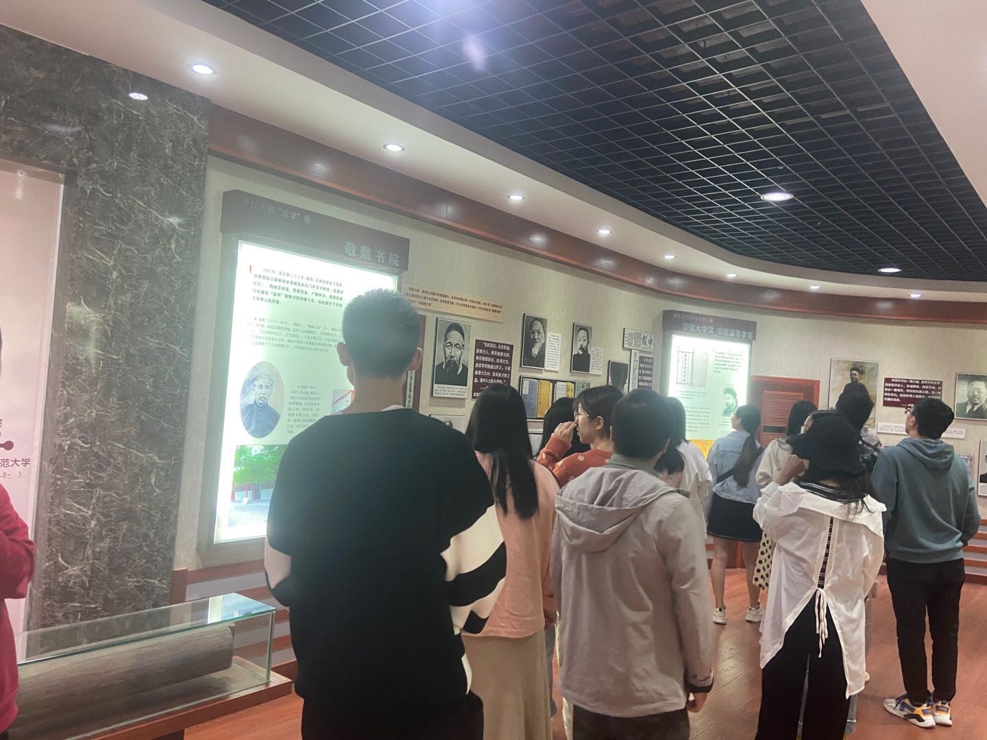 在党支部相关负责人的带领下,几十余名研究生新生到达敬敷学院进行参观,参观分为“校史馆”“办学成果展”两个部分。讲解员通过一张张承载了桃花族论坛