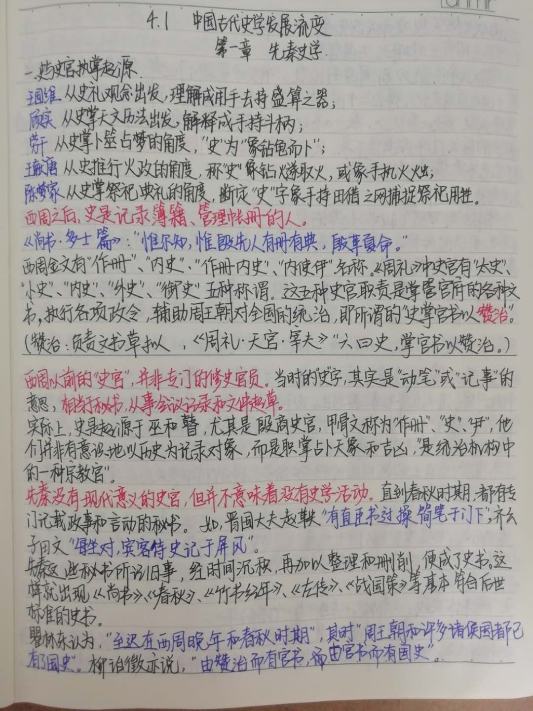 课程要点、知识难点、个人理解等全归于笔记之中。来自19级历史学专业的闵悦同学笔记字迹清晰工整、思路清晰、重点突出,展现出该同学良好的学习习惯。19级历史学专业的徐静同学则运用彩笔勾勒的知识脉络图精确地表达出每一处知识点,彩笔标注的各项内容充满对知识的理解。各式各样的笔记方法均提高了学习效率,节省了复习时间。笔尖落纸,是对知识的梳理和沉淀,每一次落笔都是倾心的投入,每一处符号都是勤奋的印记。