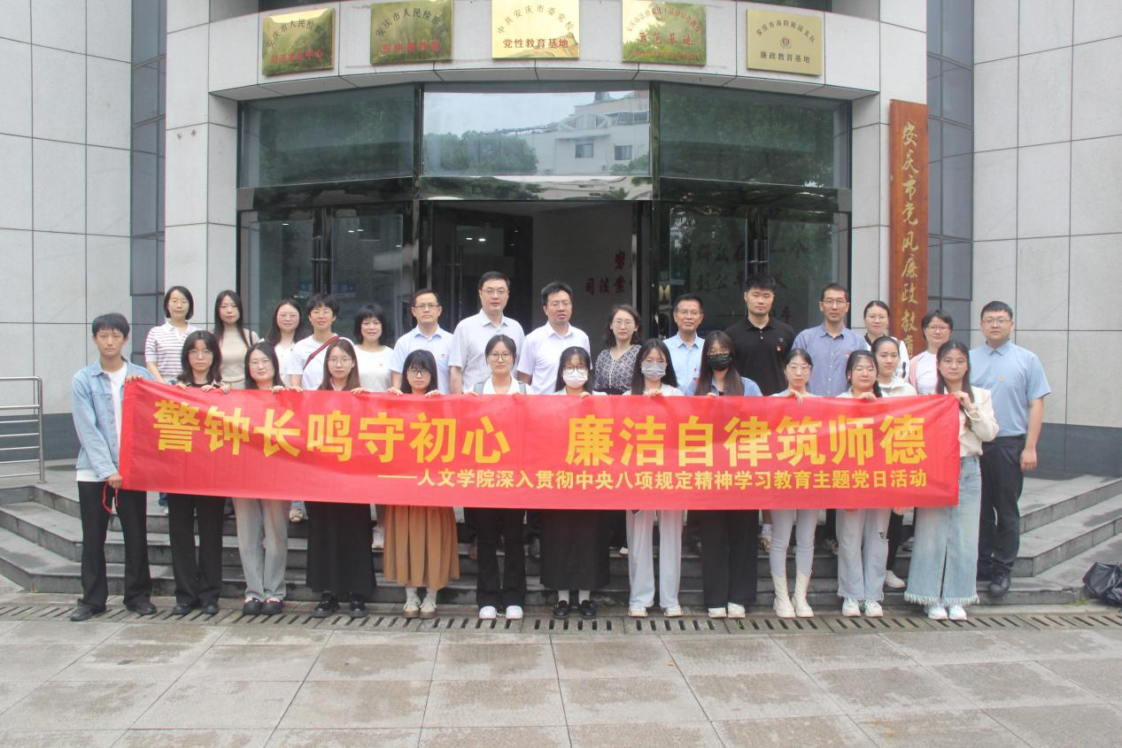 党委理论学习中心组赴安庆市党风廉政教育基地(安庆市预防职务犯罪警示教育基地),开展深入贯彻中央八项规定精神学习教育主题党日活动暨现场警示教育。学院党委班子成员、纪委班子成员、党支部书记、科级干部及学生党员代表参与。