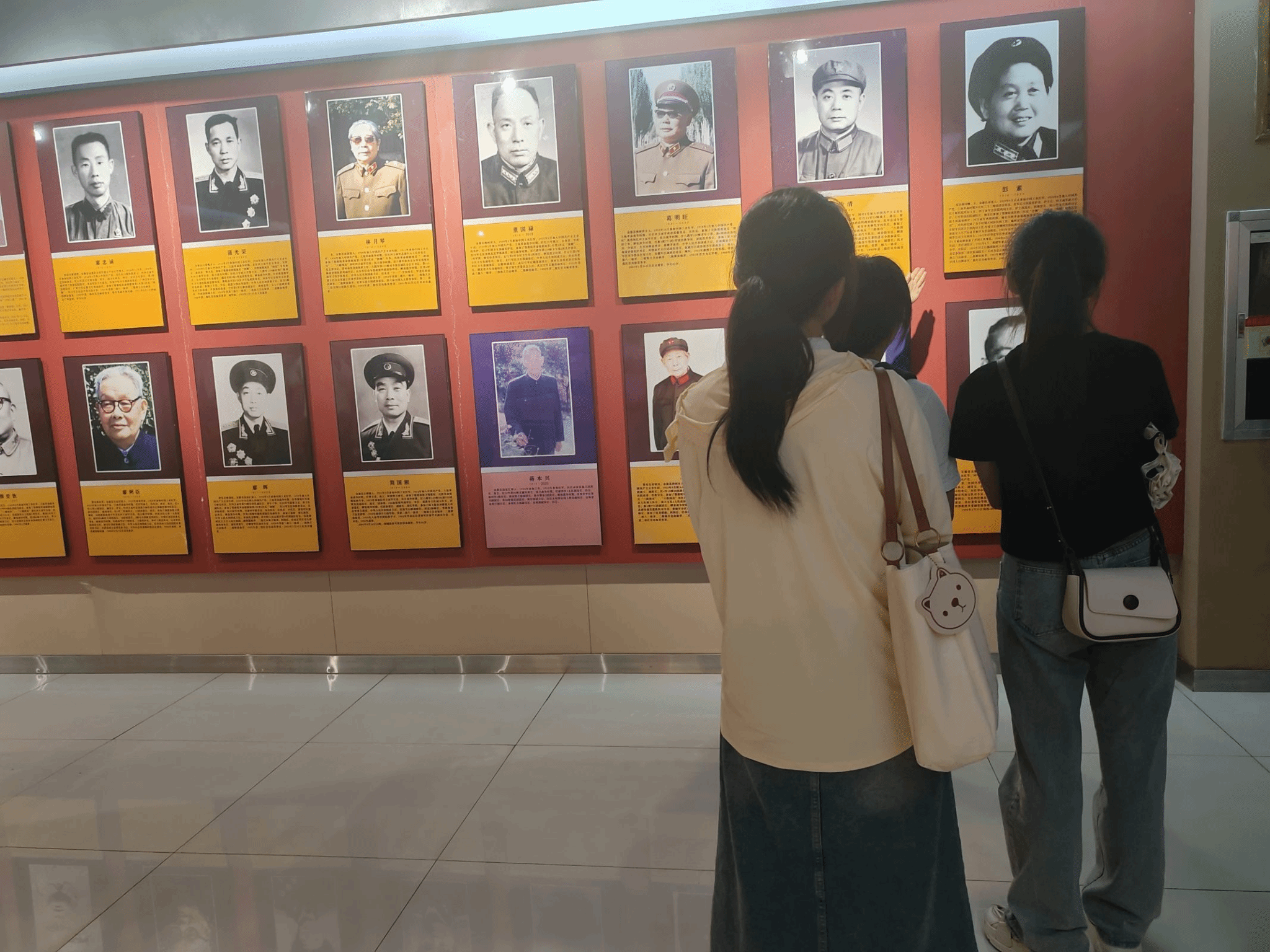 据队员们了解,金寨是红军的摇篮、将军的故乡。中央军委在1955年至1965年授衔期间,金寨县有59位被授予将军,其中上将1位,中将8位,少将50位。展现在队员面前的正是老将军们的集体群像,队员们回到了历史的原点,重新打开历史的大门,在这将星璀璨的群像中细细体悟金寨将军的奋斗史册和伟大功业。