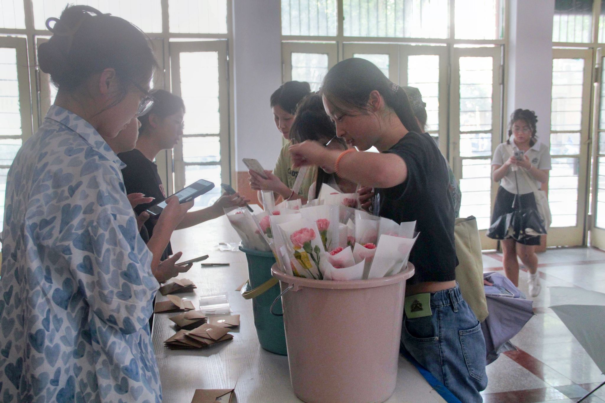 “师者悉心,永记心间。师情不却,师恩永存。”22级历史学一班的王煦宁同学认真地在贺卡上写下这句祝福语。周红兵老师颇为感慨地说到:“纸短情长,在同学们写给老师的贺卡中,我深刻感受到了大家对老师们的浓浓谢意和真挚祝福。一朝沐杏雨,终生念师恩,此次活动让同学们将自己对老师的爱意与敬意表达出来,真的非常有意义!”陆续而来的同学们纷纷在贺卡上写下祝福语,领取鲜花……浓厚的节日氛围遍及学院每一角落。