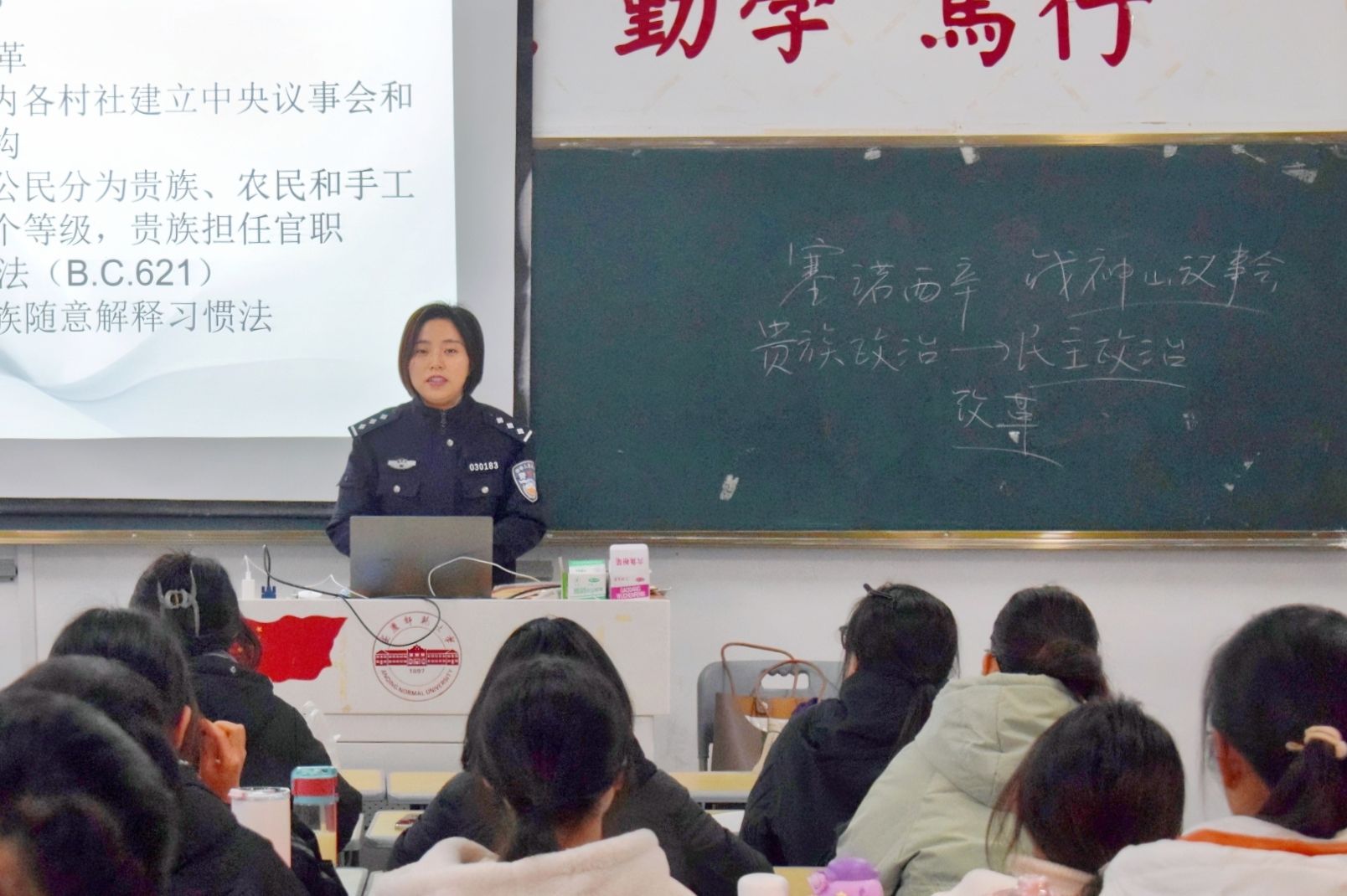 携手菱湖派出所开展地毯式反诈宣讲活动。菱湖派出所12位民警分成不同小组,在辅导员的带领下前往每个班级,开展全覆盖无死角宣传,此次活动旨在提高学生防犯诈骗的思想意识,减少财产损失,共创平安校园。