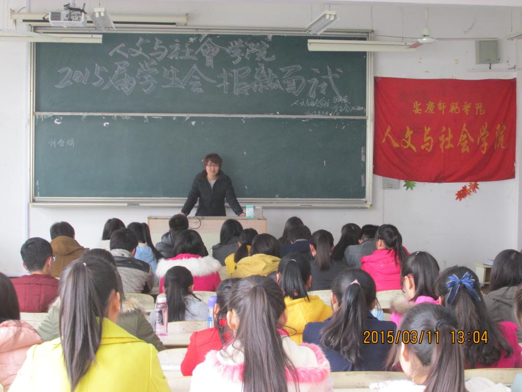 教室召开了部门干事招新宣传大会。会上,学生会主要学生干部面向全院同学对学生会下属各部门性质、职能、主要工作内容进行详细介绍,并耐心解答了同学们的疑问,使广大同学对学生会有了充分的了解。
