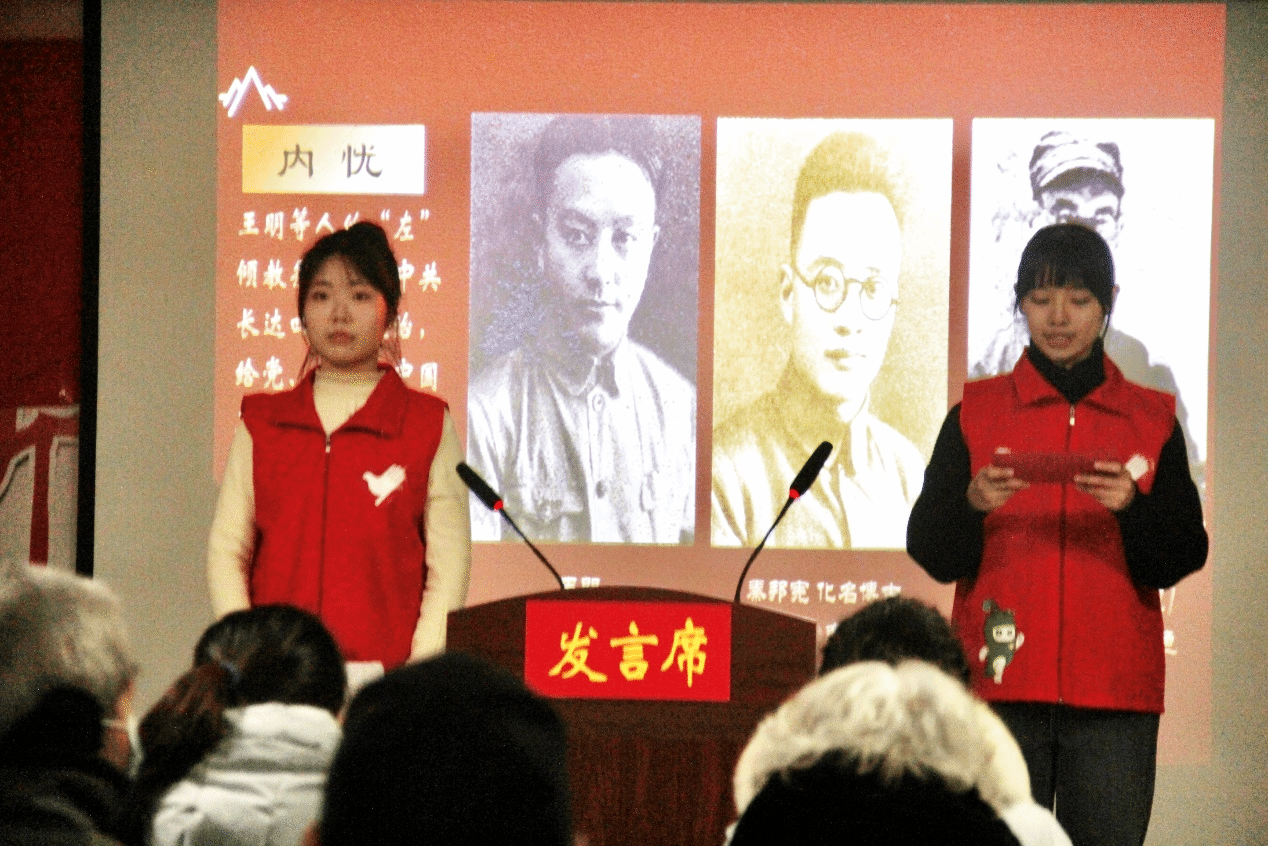 “探忆·燃灯”青年志愿宣讲团成员前往菱湖社区,为社区三十余位老党员以及众多社区工作者,进行了遵义会议精神宣讲活动。