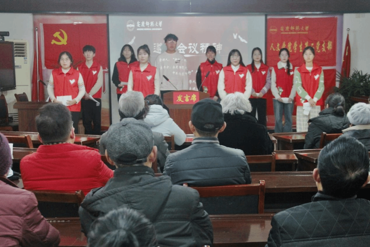 和中共安庆市大观区菱湖社区委员会联合举办,学院领导高度重视,严格把握宣讲内容和细节,宣讲成员们进行了充分的排练演绎。宣讲团成员阮思源说:“我们希望能够通过这次遵义会议精神宣讲,将伟大遵义会议精神力量转化为社区工作人员和当代大学生工作学习中的实践动力,担当时代重任,谱写时代华章。”