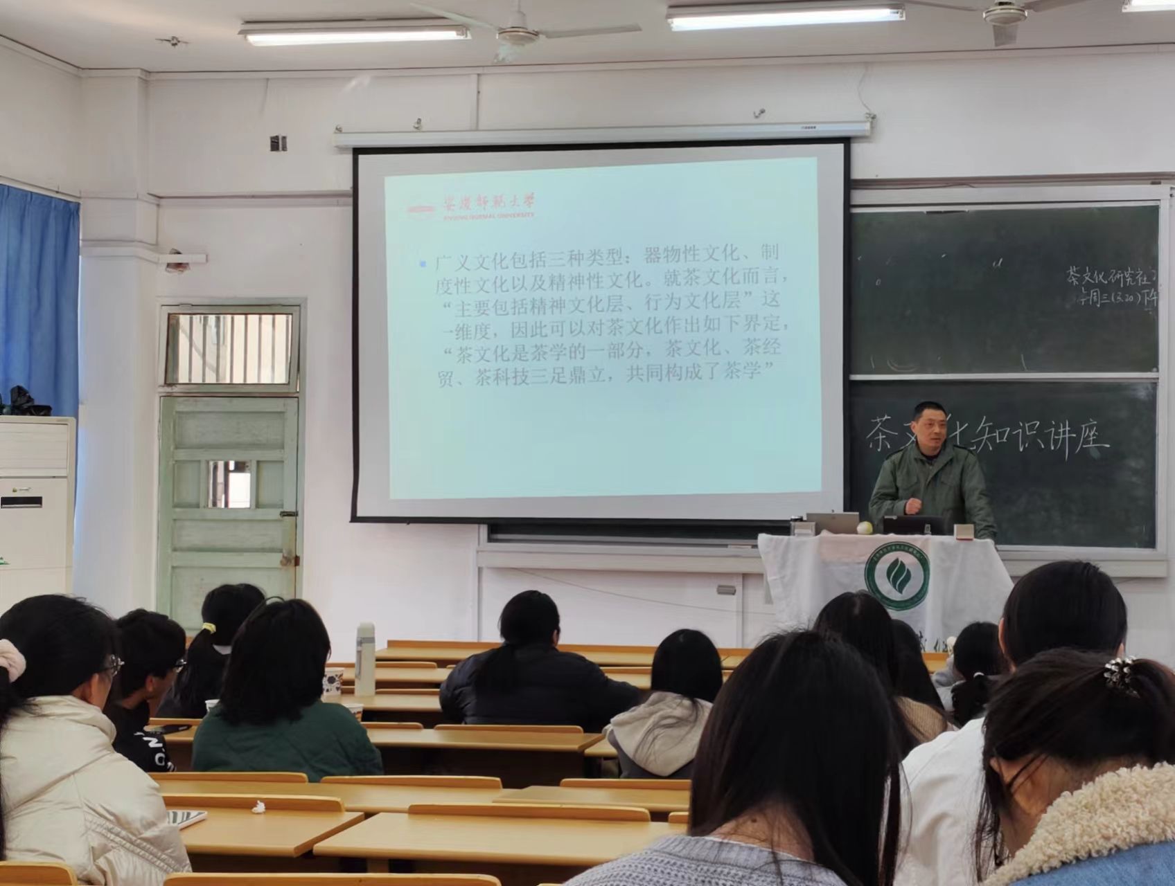 菱湖校区教学楼315教室举办了一场主题为“茶杯中的乡愁:中国茶文化中的儒释道文化”的茶文化知识交流活动。本次活动由蔡洞峰老师主讲,旨在让同学们了解中国茶文化中蕴含的儒释道思想,感悟茶道中的韵味。