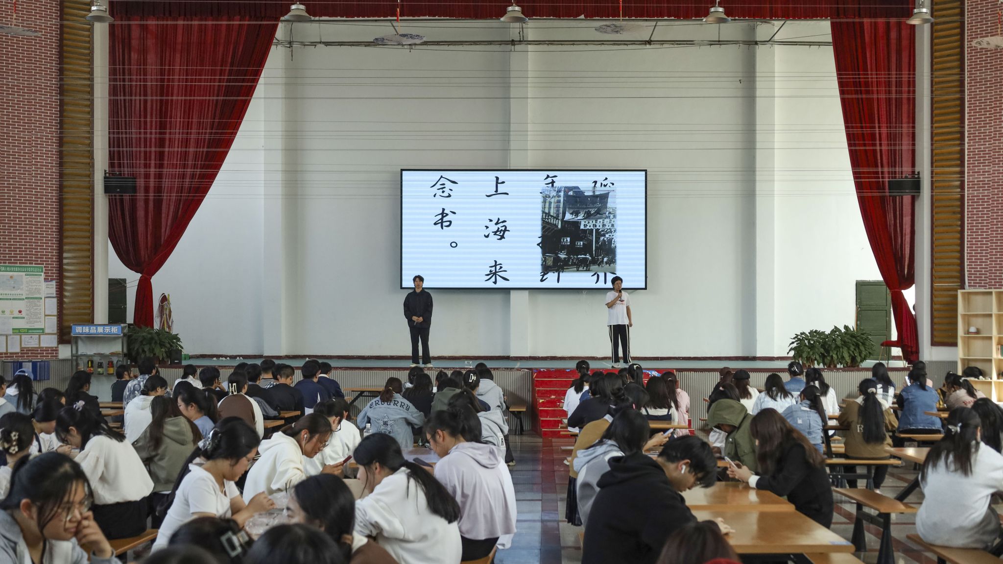 敬敷青年党史宣讲团结合宣讲、朗诵和原创话剧的形式在菱湖校区大礼堂开展《延乔兄弟》“沉浸式”党史宣讲,从创作剧本之初到完成表演,经过主创人员们的多次研讨,剧本修改数十次,历时一年。