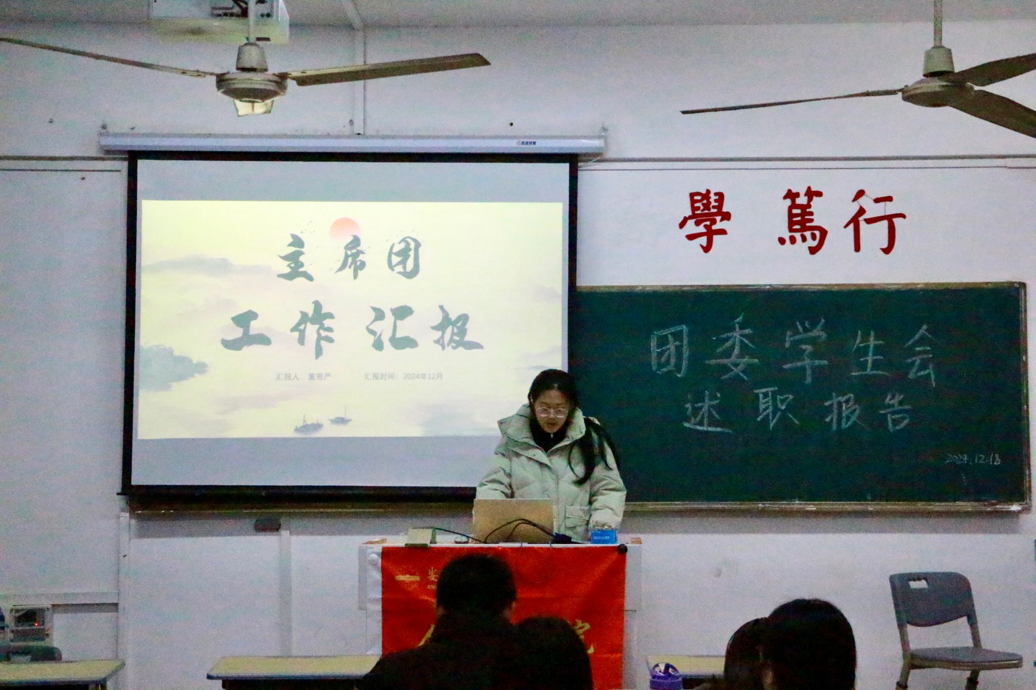 团委学生会于教学楼213教室召开述职汇报。学生会各部门负责人参加会议,学院团委负责老师洪星星出席指导。