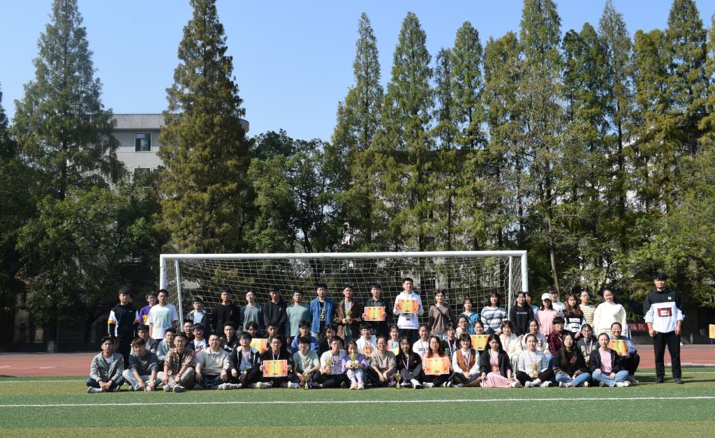 在菱湖校区操场上举办了本届“菱湖杯”男女足比赛颁奖仪式,由主持人宣布比赛各奖项的得主。本次共有11个队伍赢得荣誉,其中男子组一等奖为2019级汉语言文学五班和七班联队,女子组一等奖为2019级历史学一班。随后,辅导员老师按照名次为各队伍颁发了奖杯、奖牌以及奖状并进行了合影留念。