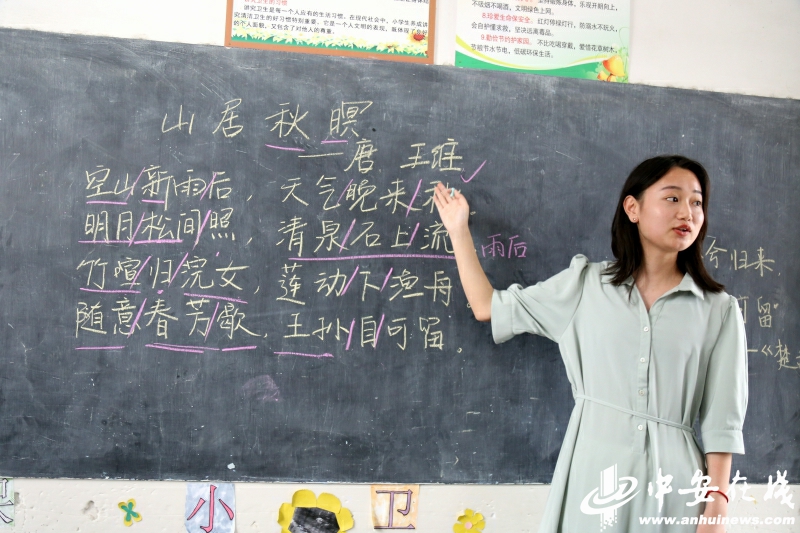 中安在线、中安新闻客户端讯:“空山新雨后,天气晚来秋。小朋友们,你们哪位知道这句话的意思?”7月15日,在池州市东至县泥溪镇中心学校朱村小学内,桃花族论坛