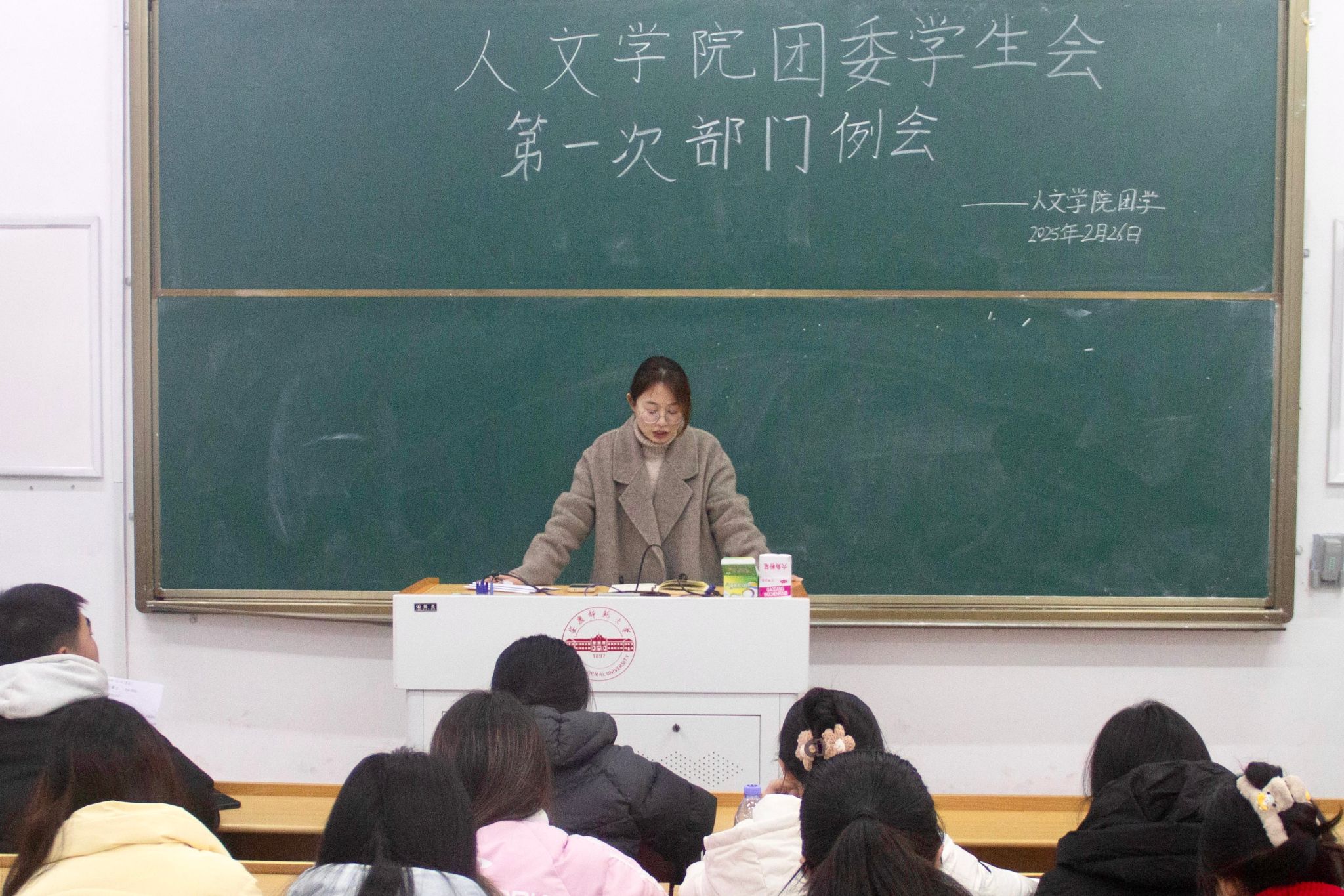 于教学楼214教室召开新学期团委学生会工作例会。学院团委负责老师洪星星出席主持会议,各部门负责人参加会议。