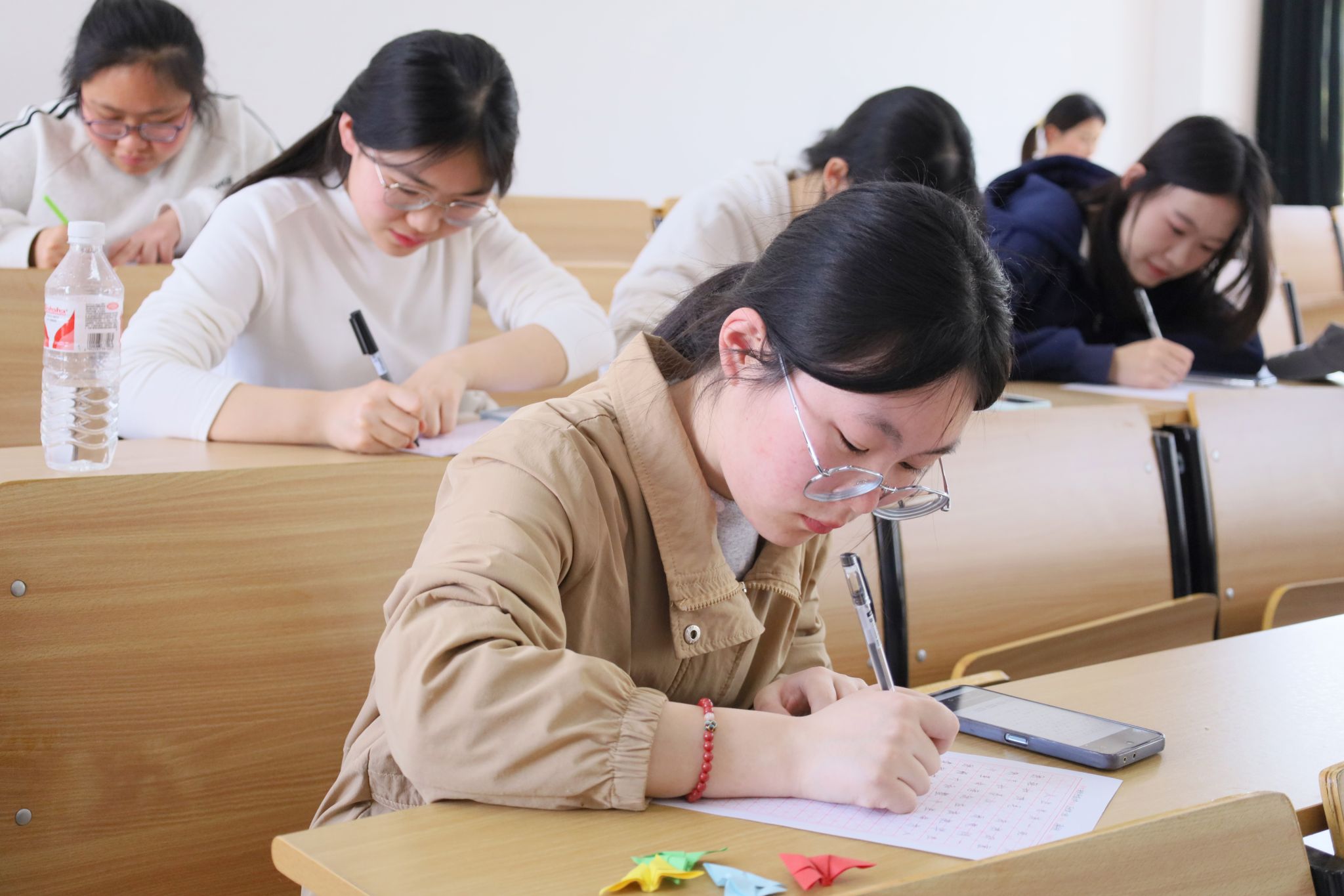 活动现场,学生们领取A4纸,用手中画笔精心创作。一幅幅绘画作品色彩斑斓、构思精巧,直观地再现了雷锋帮助他人的动人场景,展现雷锋在岗位上专注工作的模样,生动展示了雷锋精神的丰富内涵。与此同时,书法展示区热闹非凡,参与者们手执毛笔,蘸取墨水,写下“向雷锋同志学习”、“全心全意为人民服务”等经典语句,笔划刚劲有力,以书法之美传递对雷锋精神的尊崇。