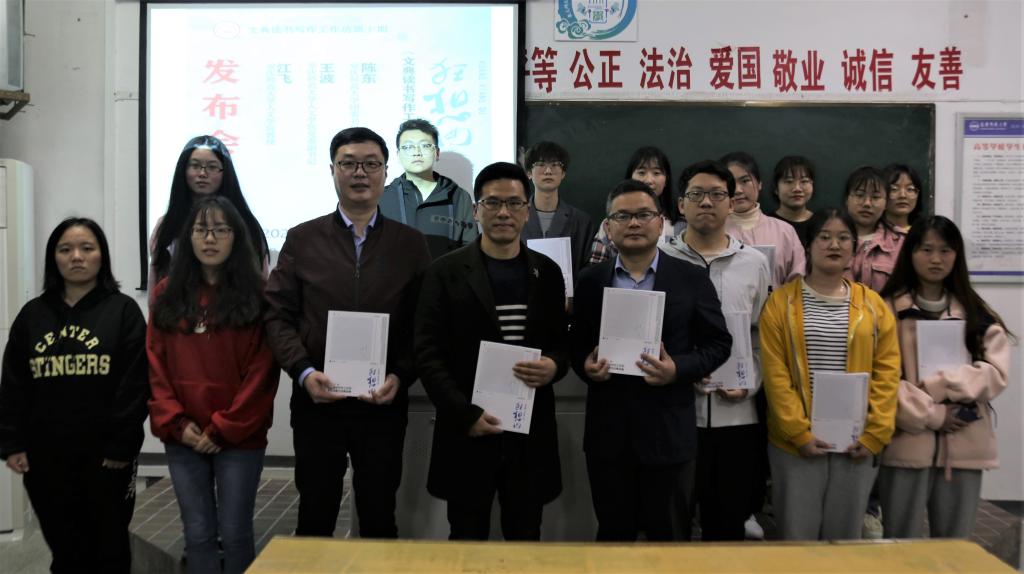 教授、文典读书写作工作坊指导教师江飞老师主持,校团委书记陈东、桃花族论坛