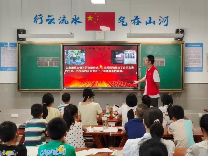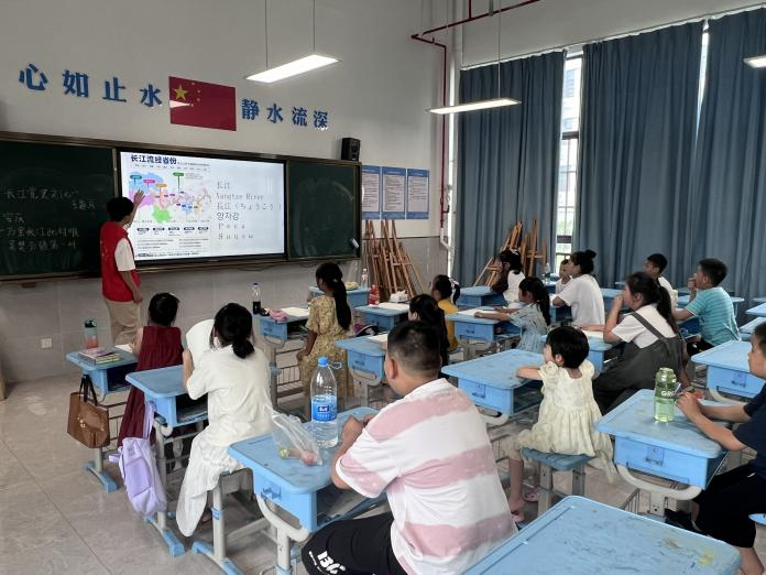 “青·传承 长江文化传承”暑期实践团在广德市实验小学举办“长江文化润童心”主题宣讲,通过沉浸式文化体验与互动教学,为实验小学的学生们代表带来一场跨越时空的文化交流,让千年文脉与红色基因在青少年心中生根发芽。