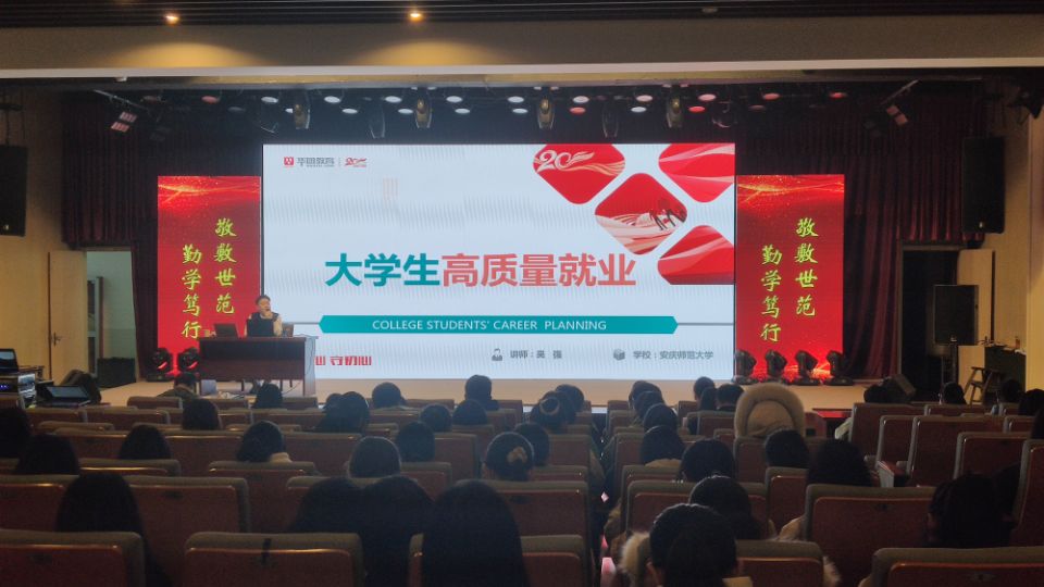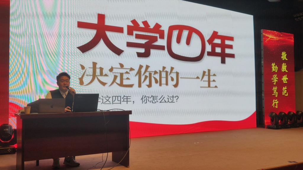 在菱湖校区图书馆报告厅举办“职”面人生大讲坛。华图教育职业规划师吴强应邀为2021级全体新同学做了“实现职业梦想 激发潜力未来”专题讲座。