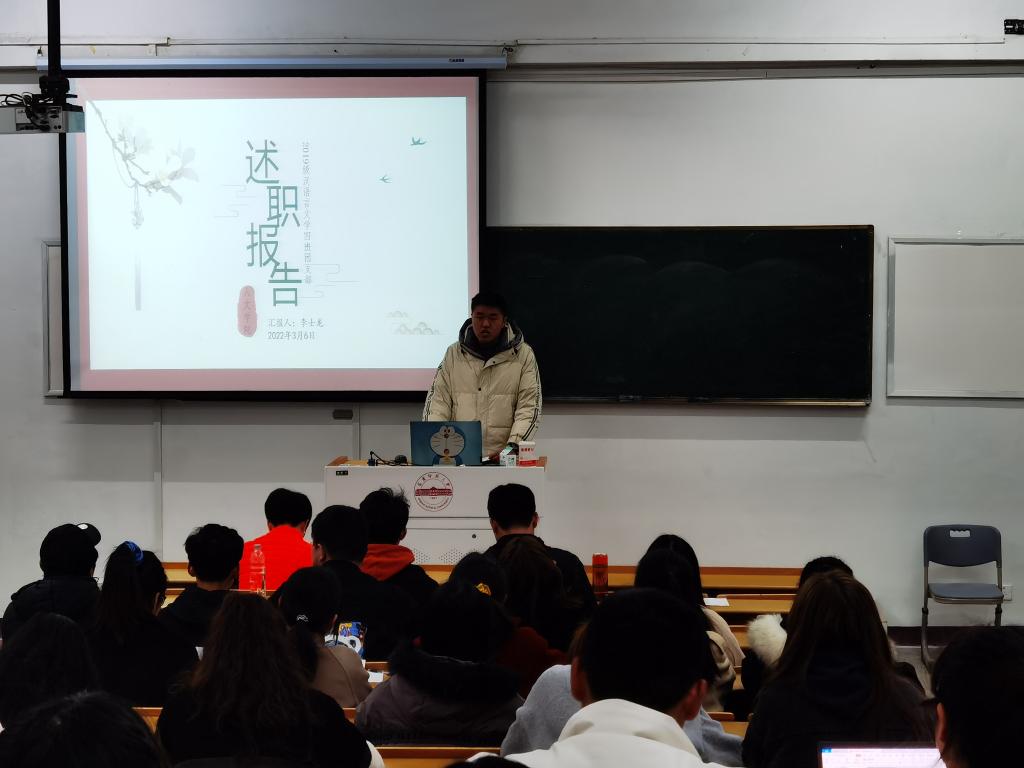 2021年度团支部书记述职评议考核大会在教学楼214召开。院团委副书记刘旭婷,团委组织部成员以及各班级团支部全体干部参加大会。
