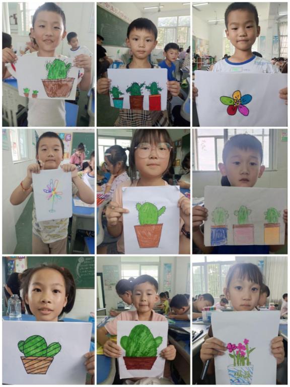 著名的艺术教育家丰子恺先生曾说过:“能用作画一般的心来处理生活、对付人生,则生活美化、世界和平。”审美教育是以艺术的形式,通过审美活动潜移默化地优化人的心理结构,铸造完美人性,提升人生境界。在7月3日的课堂上,团队中的尹彪同学,通过精心准备的中国美术史知识,图文并茂地向小朋友们介绍了中国美术知识。令人眼花缭乱的青铜艺术、气派辉煌的建筑艺术、闻名世界的兵马俑、敦煌莫高窟……无不让人叹为观止;理论的讲解深入浅出,随后的实践教学在理论讲解的基础上,针对小朋友们的接受特点,有针对性地设计了简笔画教学,实践团的李振东同学精心设计的简笔画内容,不仅激发了同学们对美术的兴趣,还激发了学生们的想象,学生们纷纷拿起自己的画笔,或是描绘出了美丽的自然风光,或是描绘了对美好生活的想象,通过孩子们的画作,一个生意盎然的童趣世界展现在实践团面前。
