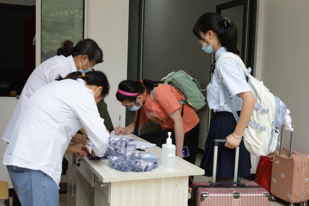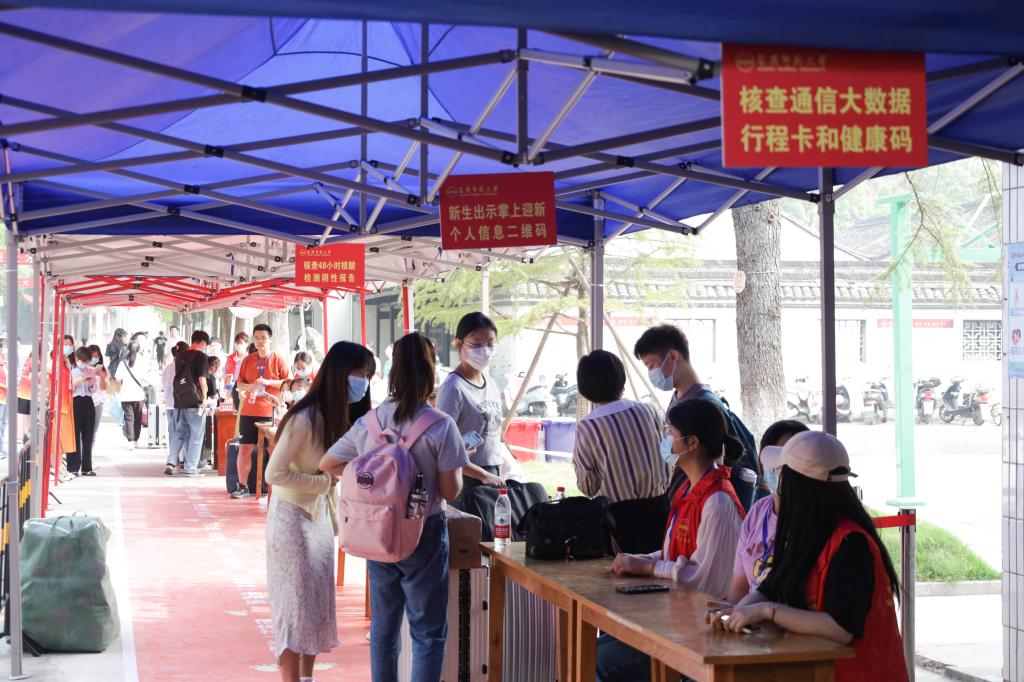 精心部署,有序迎新。为确保迎新工作顺利开展,在迎新之初学院就在各方面做了精心的统一部署,各项环节,统一协调,听从指挥。在学校大门口处,新生们依次出示健康码、核酸检测报告、行程码并进行体温检测,落实预防新冠疫情的有关要求,并在迎新志愿者的引导下到达报到点进行入学登记。