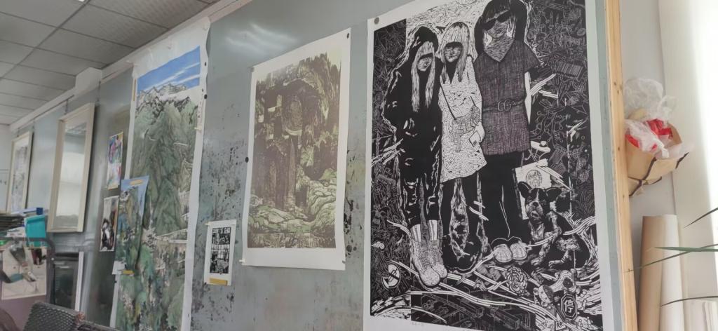 各专业遴选出来的8名同学,在校美术学院陈小克老师带领下,一同前往安庆市美术馆,在安徽省著名版画家郑贤红老师指导下了解学习雕版与版画。