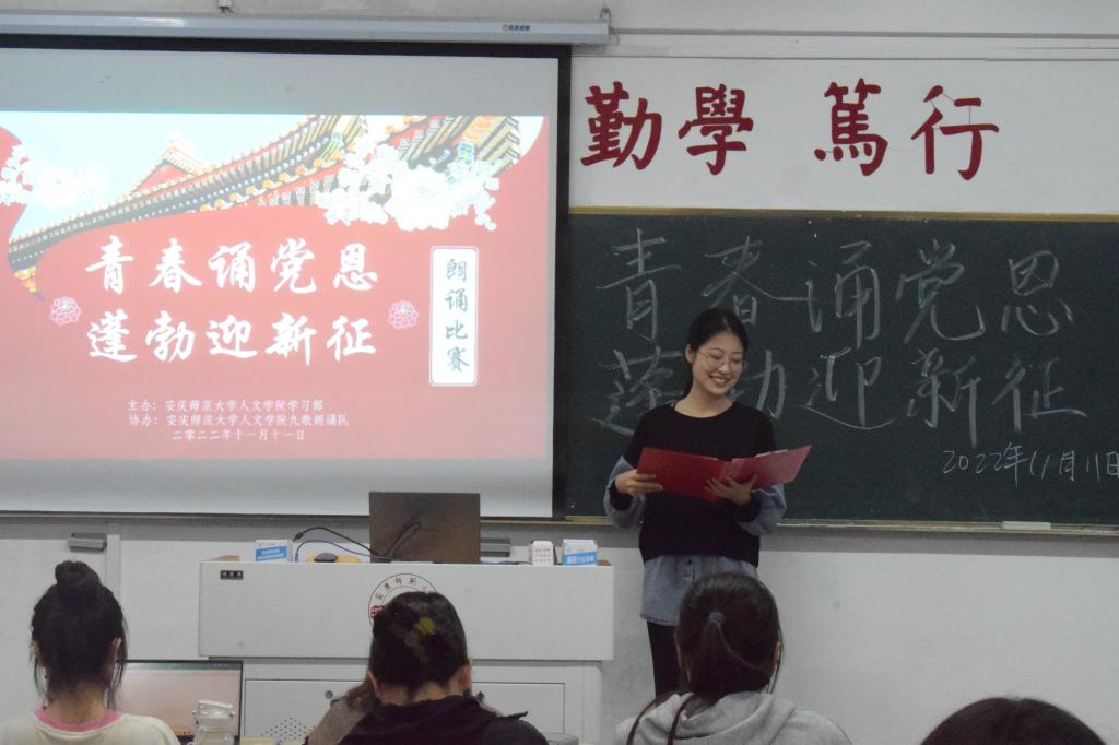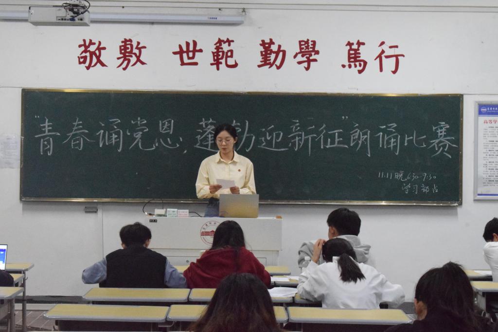 1于11月11日在教学楼310、311教室举办“青春诵党恩,蓬勃迎新征”朗诵比赛,近70名同学参加了此次比赛。