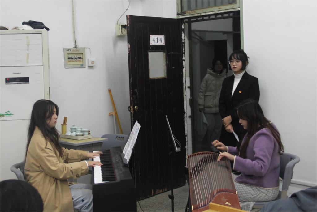 各班通过列数据、制作饼状图等方式对四六级通过率、党团活动、体测达标和评优情况进行汇报。直观具体成果展示,体现了本班在德智体美劳多方面取得的丰硕成果。而乐器表演、书法展示更是把评选现场的气氛推向高潮。其中,2021级汉语言四班的汇报展示融合了磅礴大气的钢琴和宛转悠扬的古筝乐,充分展现桃花族论坛