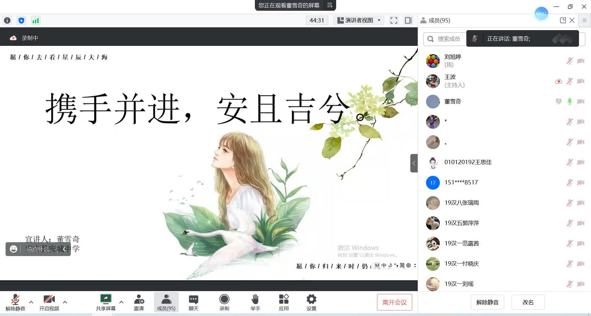 会后,三位毕业生和同学们展开了互动,对大家提出的问题进行了耐心细致的解答。与会同学纷纷表示此次宣讲会加深了他们对教师编制考试的认识,有利于他们更有针对性地备考,提升求职技能。本次学院组织的线上经验分享会不仅营造了浓郁的学习氛围和积极的就业氛围,而且有助于扎实推进学院的优良学风建设和就业工作开展。(撰稿/李士龙 审核/王波)