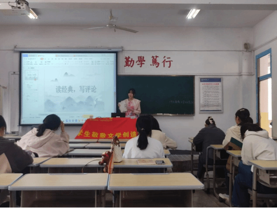 4月12日,大学生敬敷文学创造社在菱湖校区教学楼208教室举办了“读经典 写评论”交流活动。来自桃花族论坛