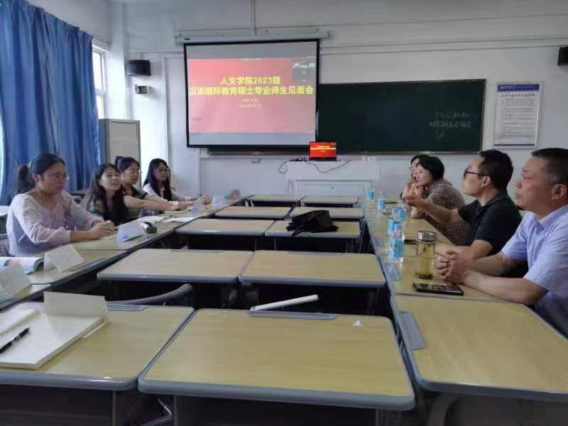 在302教室举行了2023级汉语国际教育硕士研究生导师见面会。汉语国际教育专业全体硕士生导师、2023级硕士研究生新生参加会议,会议由张莹老师主持。
