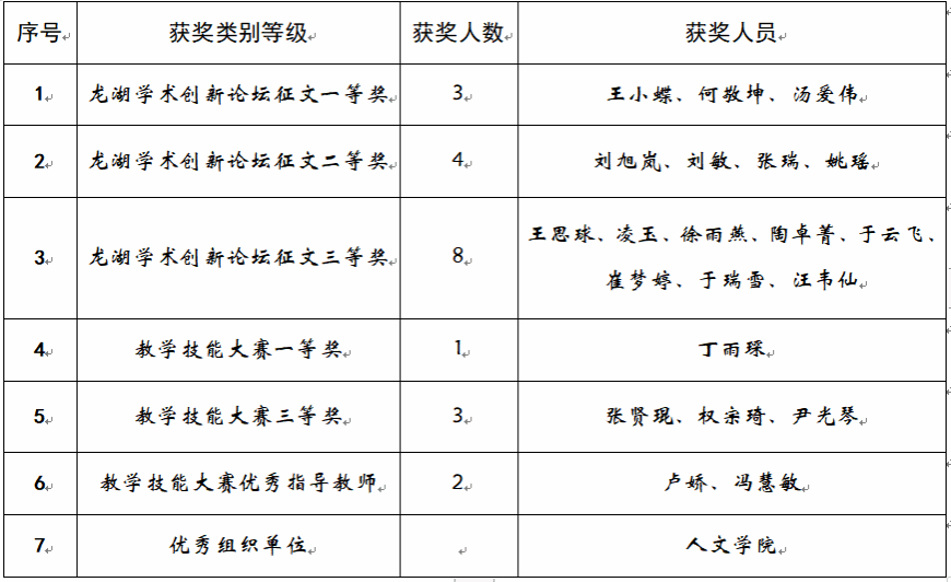 获得包括“优秀组织单位”在内的奖励共7项,详情如下: