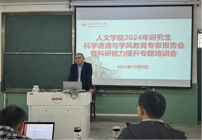 学术道德规范及学术不端行为处理办法》等政策文件。他还结合实例,指出在论文写作中要警惕AI技术的不当使用,提醒同学们要时刻紧绷学术道德和学术规范之弦,诚信做人,严谨治学。