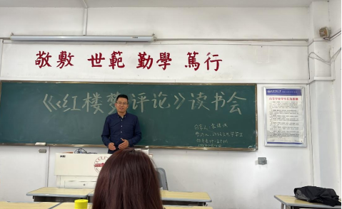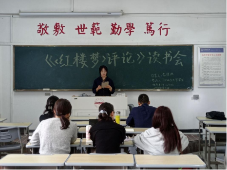此次读书会主要分为主持人读书书目介绍、学生书籍内容介绍、师生讨论以及老师点评与总结四个环节进行。会议伊始,主讲人袁逸琪介绍了《‹红楼梦›评论》的作者及这本书在文学研究史上的意义,接着讲了三个方面的内容,一是《红楼梦》的悲剧意义,二是王国维与叔本华理论的中西对比,三是个人的阅读心得;随后,同学们对本次读书会所讲内容进行了深入讨论。