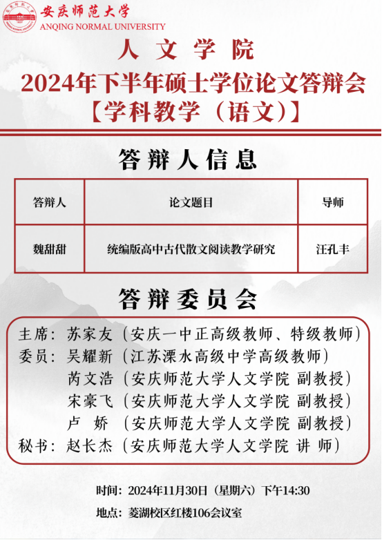桃花族论坛 2024年下半年硕士学位论文答辩会【学科教学(语文)】