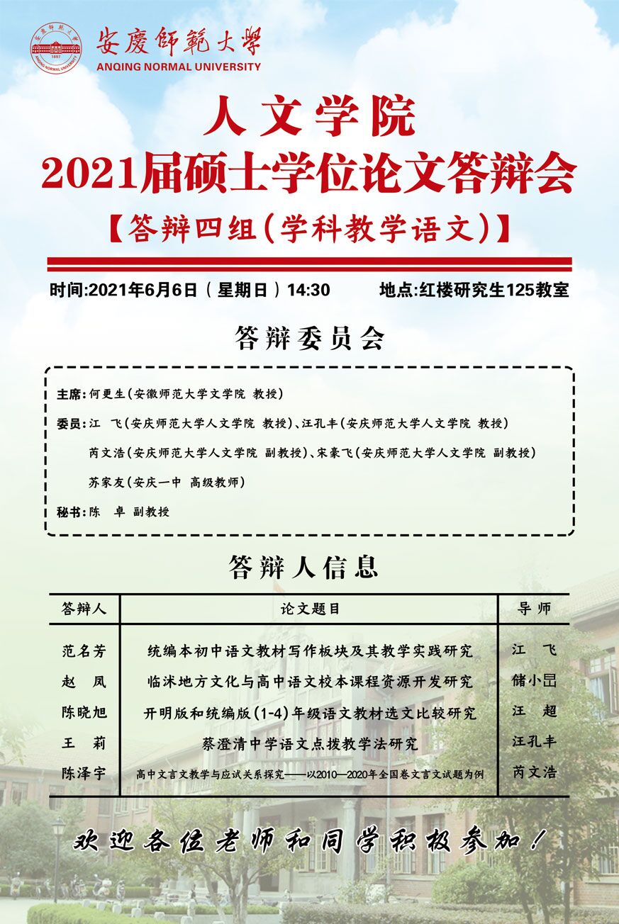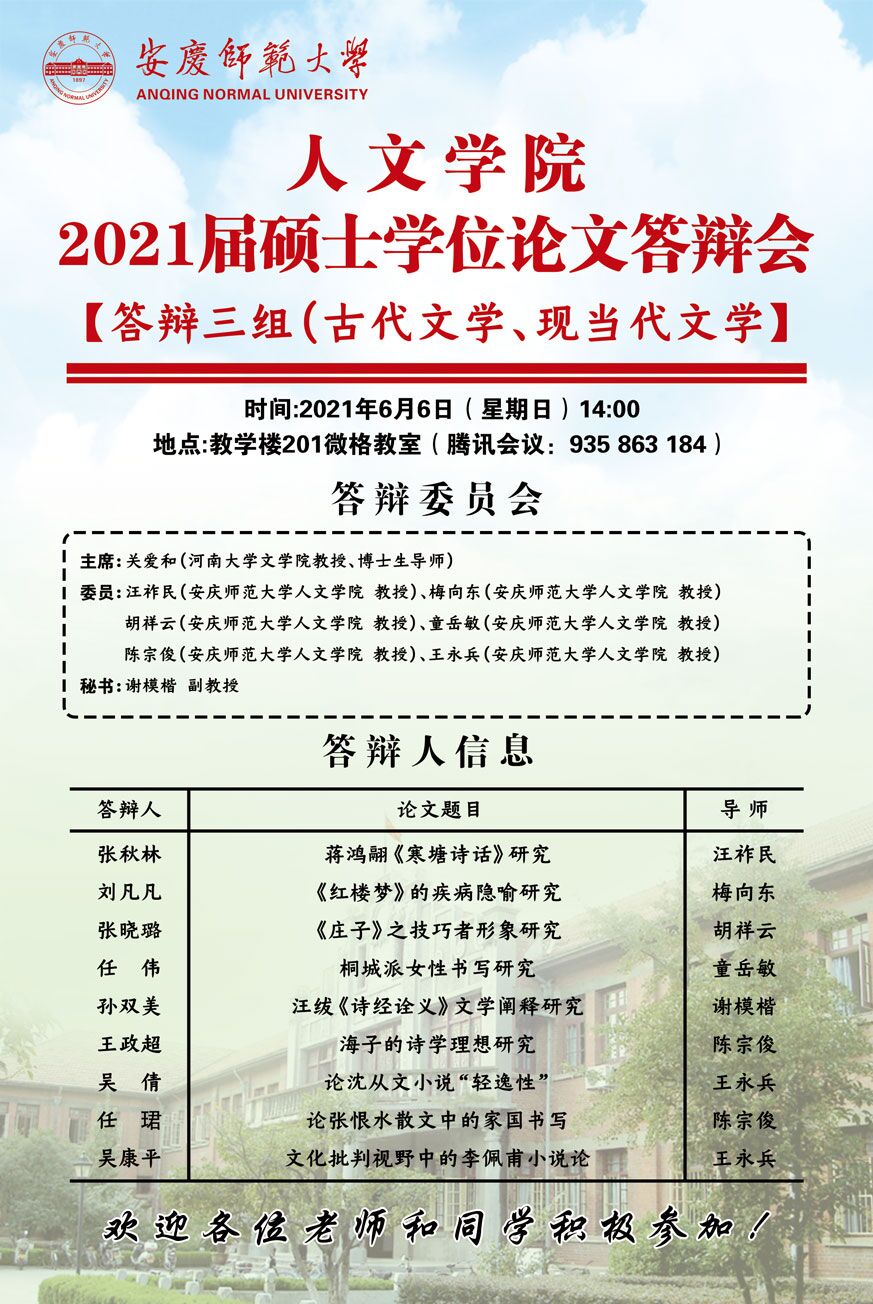 上一篇:推进文史对话融合,深化专业实践效果——2020级学术型研究生赴扬州专业实践报告会顺利举行