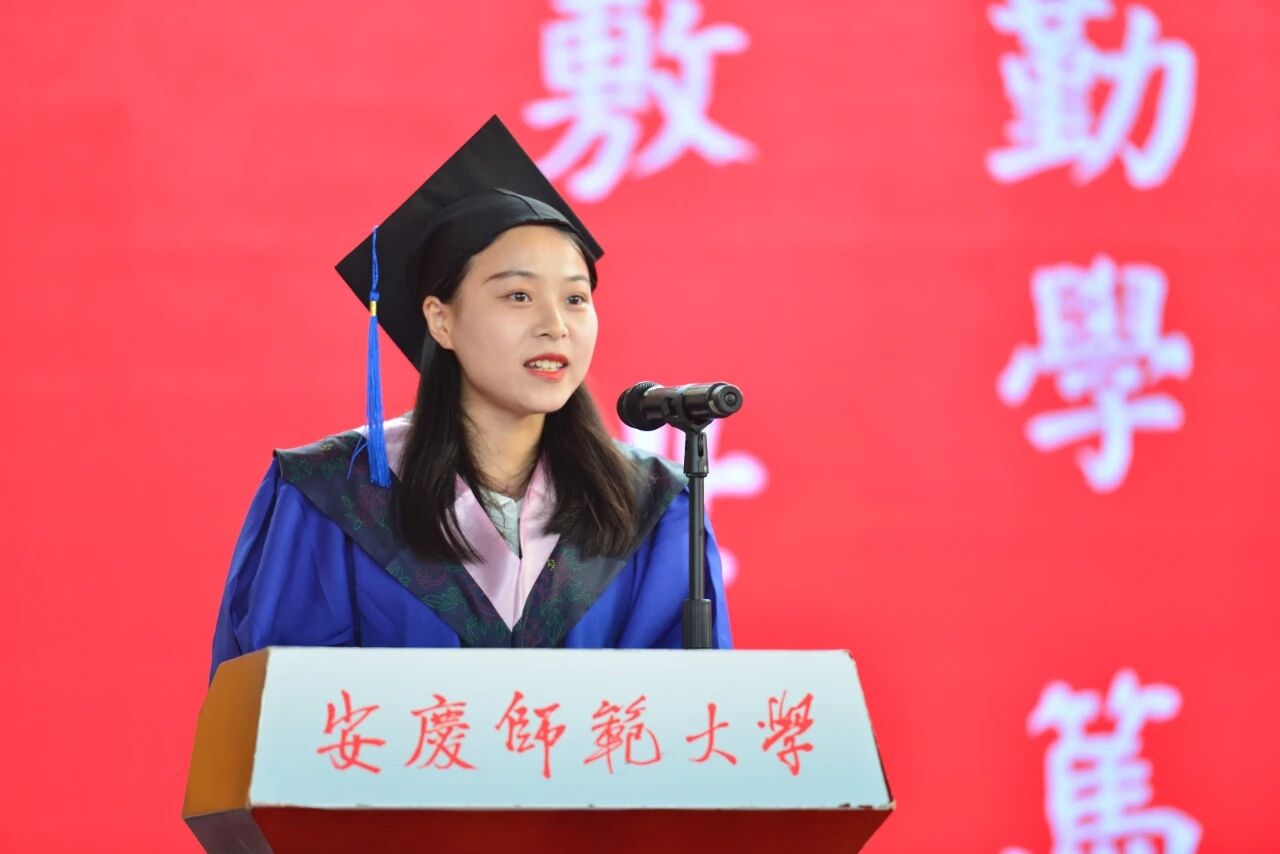 2018级中国现当代文学专业硕士研究生吴康平同学,作为毕业生唯一一名代表在毕业典礼上做了精彩发言,发言回顾了她与师大的初遇、与知识的结缘,与梦想的交会。作为毕业生代表,吴康平同学对即将结束的校园生活表达了依依不舍,也向全体毕业生发出了共赴未来梦想的邀请,勉励大家用坚实的脚步丈量梦想的坐标,用辛勤的双手播种梦想的种子,立足当下,务实耕耘!