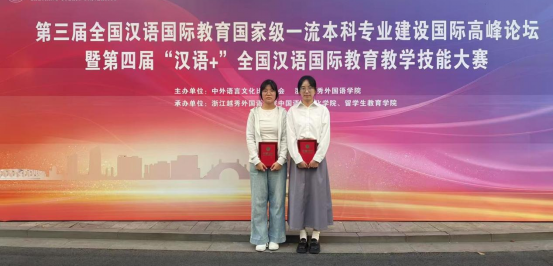 2023级汉语国际教育专业学生赵吉莉获得本科组二等奖、2025级国际中文教育硕士研究生王丽丽获得研究生组三等奖,两位指导老师张莹、张彤彤荣获“优秀指导教师奖”。