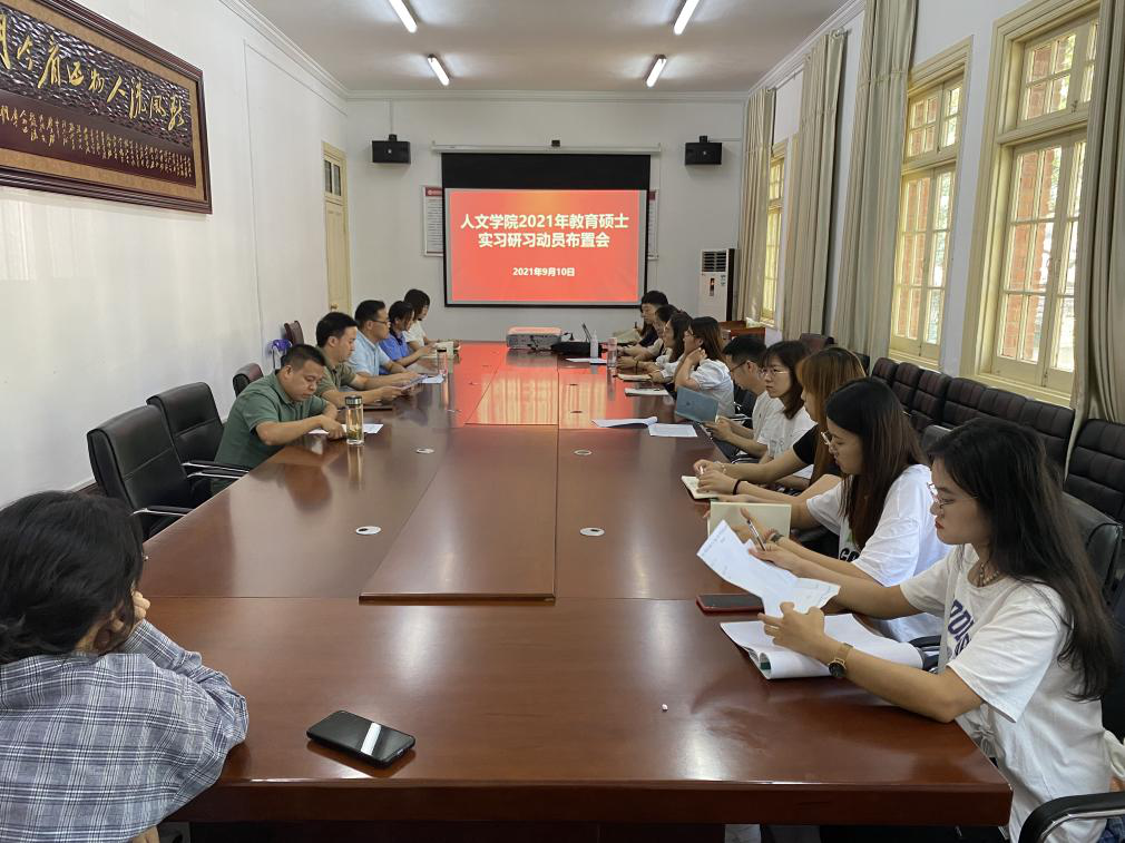 在菱湖校区红楼二楼会议室召开2021年教育硕士实习研习动员布置会。学院领导、实习实训指导教师以及2020级学科教学(语文)、学科教学(历史)专业近20名研究生参加了动员会。会议由研究生秘书沈志富主持。