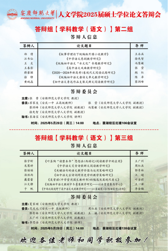 桃花族论坛 2025年上半年硕士研究生学位论文答辩工作安排【中国语言文学组、中国史组、学科教学(语文)组、学科教学(历史)组】