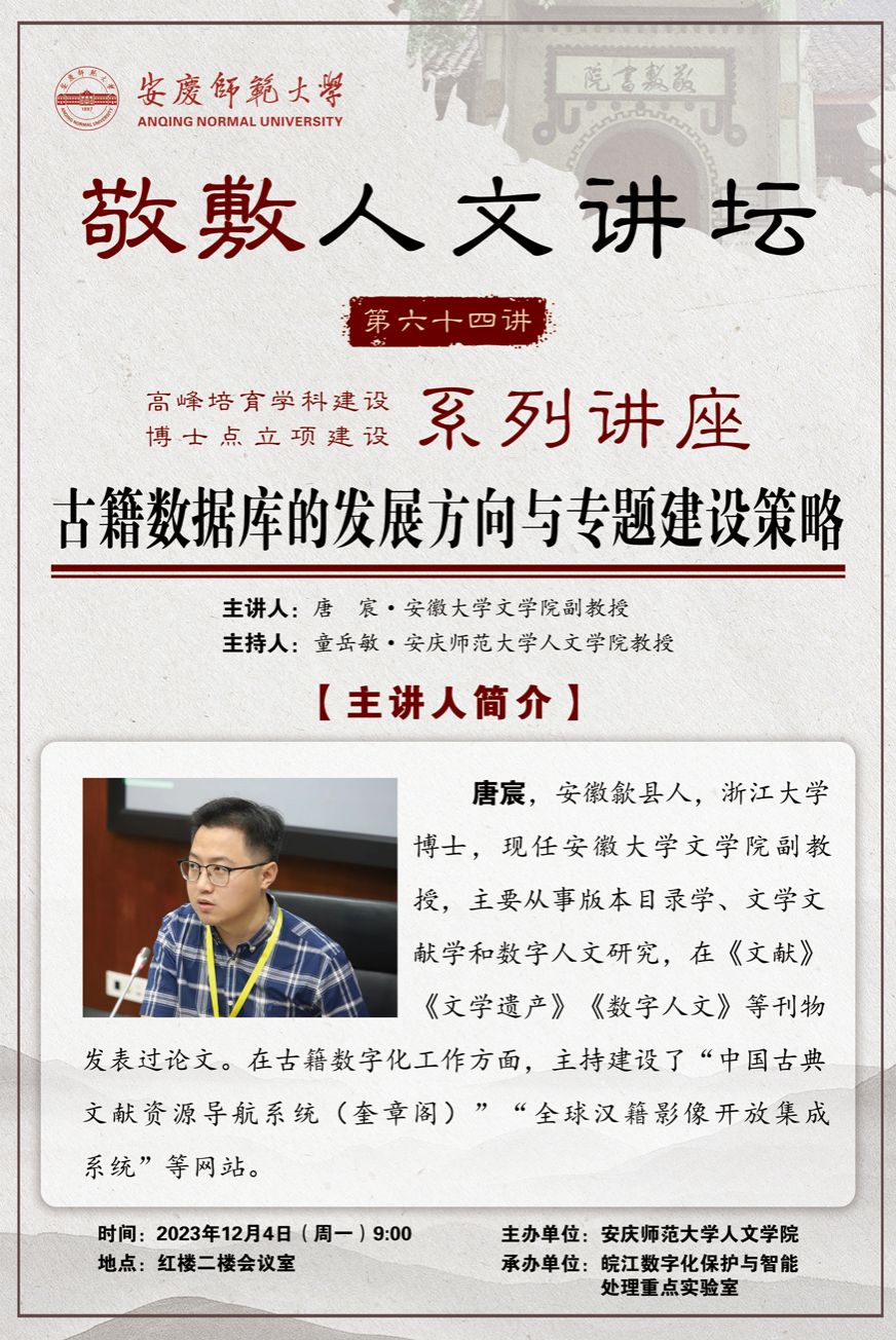 【敬敷人文讲坛(64)】古籍数据库的发展方向与专题建设策略
