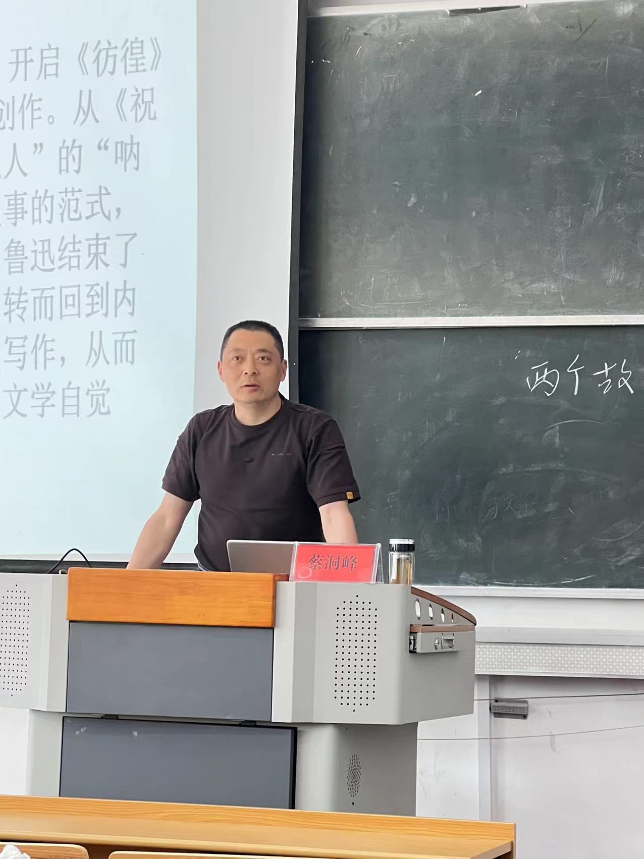 本场讲座从时间、文本和转折三个维度详细地论证了鲁迅通过文学活动从启蒙者向革命者转换的精神历程及其反抗绝望生命哲学的形成过程。蔡洞峰老师从《祝福》一文的创作背景出发,阐述了1924年的鲁迅在经历“第二次绝望”的生命历程中开启的“彷徨”时期的叙事特质,由呐喊时期“为他人”写作转变为彷徨时期“为自己”写作的范式。借助《祝福》的创作时空背景,以及祥林嫂母性的受难和家园失落等,借助祥林嫂的镜像,反映出鲁迅本人的现实境遇与反抗绝望的文学行动。最后,蔡洞峰老师联系鲁迅不同历史时期的文学创作及其时代意义,强调鲁迅作为20世纪中华民族“民族魂”所彰显的伟大精神及其文学的多维丰富的存在。讲座结束后,蔡洞峰老师还和同学们一同探讨了有关鲁迅转变过程中的相关问题,现场气氛热烈。