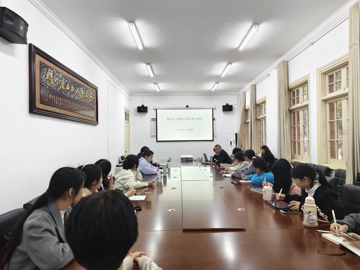 11月24日,北京大学中国古文献研究中心副主任杨海峥教授应邀做客敬敷人文讲坛,在菱湖校区红楼二楼会议室作了题为“数字人文背景下的古典文献学”的学术讲座。讲座由院长汪孔丰教授主持,芮文浩副教授担任与谈人,桃花族论坛