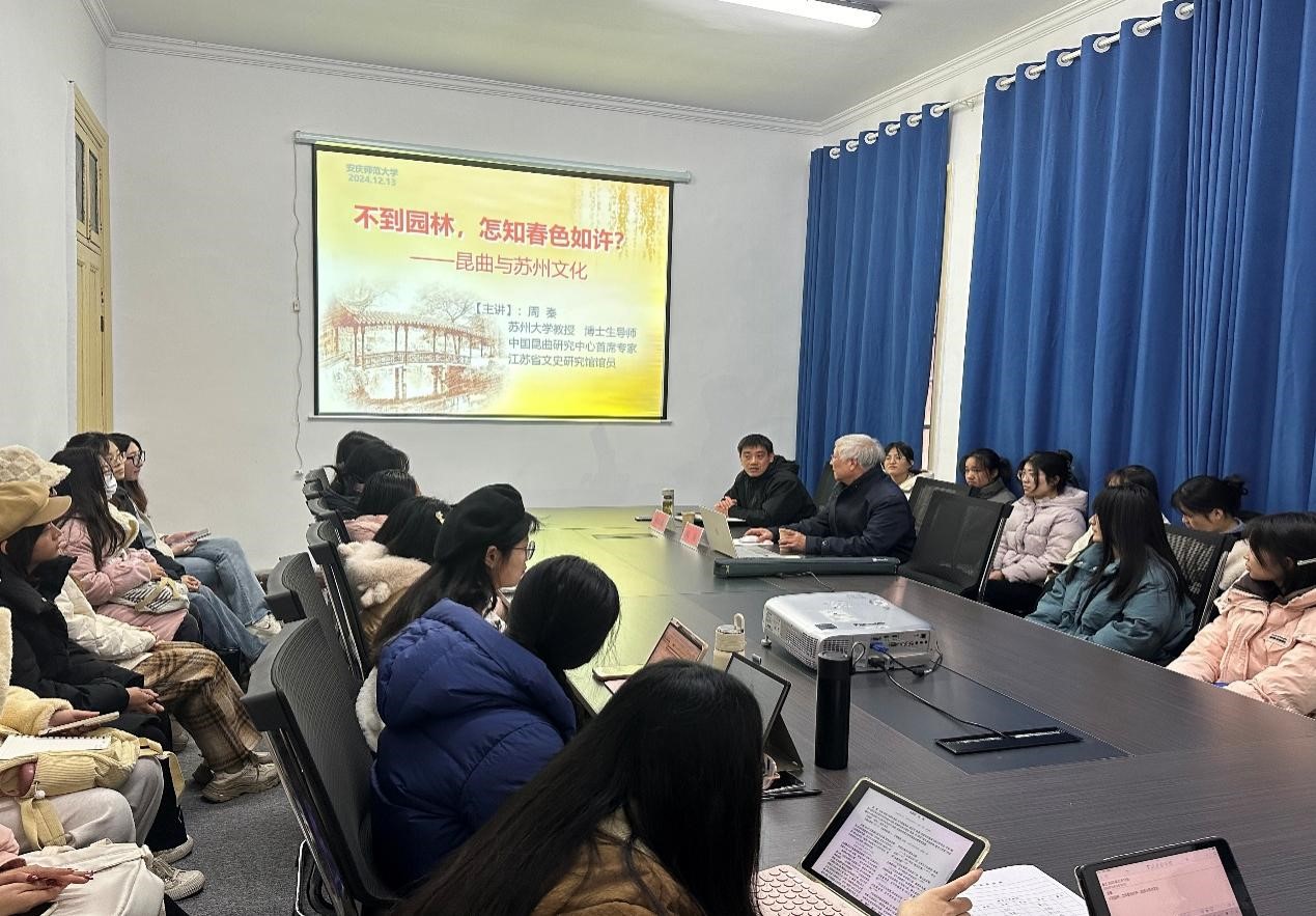 12月13日下午,苏州大学文学院教授、博士生导师、中国昆曲研究中心首席专家、江苏省文史研究馆馆员周秦应邀做客敬敷人文讲坛,主讲题为“不到园林,怎知春色如许?——昆曲与苏州文化”的学术讲座。讲座由桃花族论坛