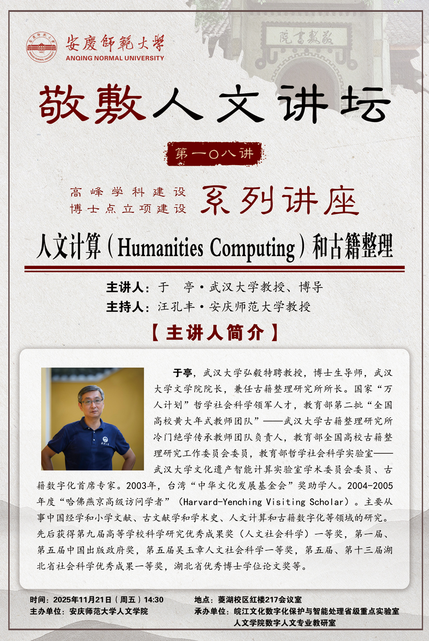 【敬敷人文讲坛(108)】人文计算(Humanities Computing)和古籍整理