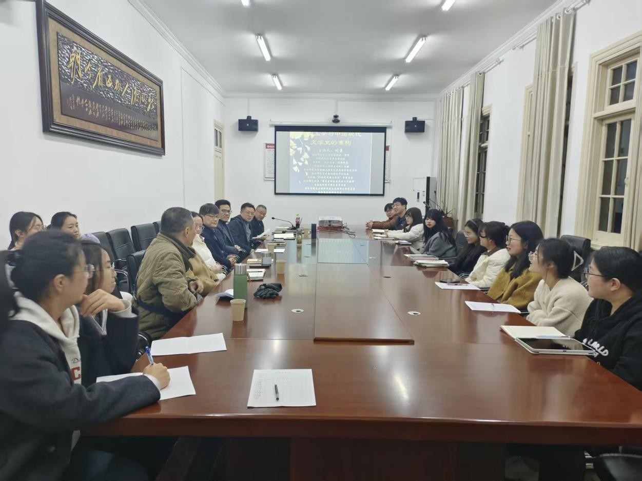 师生带来了一场题为“文明互鉴与中国现代文学史的重构”的学术报告。本场讲座由陈宗俊教授主持,江飞教授、徐先智副教授、蔡洞峰副教授、胡莎博士、张敏博士等老师以及中国现当代文学部分研究生和本科生近30人参加了此次活动。