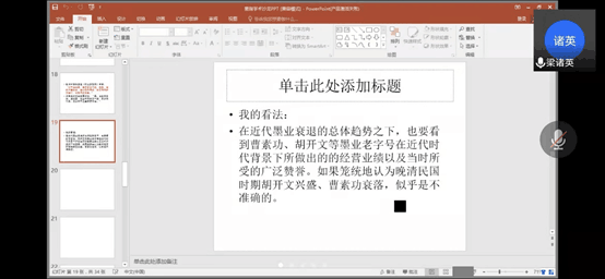 主办、龙睛读书社承办的第13期菱湖学术沙龙线上讲座顺利举行。本次学术报告由梁诸英、方晓珍教授主讲,徐超博士担任主持人,中国史、学科历史专业硕士线上聆听学习。