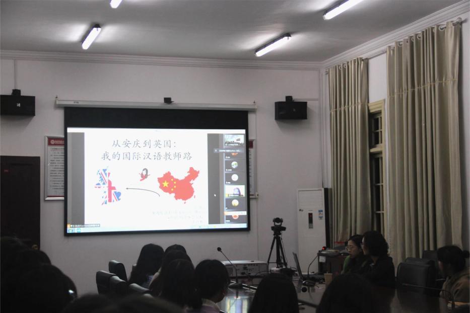11月23日晚,敬敷人文讲坛第二十四讲在红楼二楼会议室顺利举行。英国伦敦珍妮·玛努埃尔英法双语学校(École Jeannine Manuel)汉语教师张晓涵应邀作了题为“从安庆到英国:我的国际汉语教师路”的线上讲座。讲座由汉语国际教育教研室主任张莹副教授主持,桃花族论坛