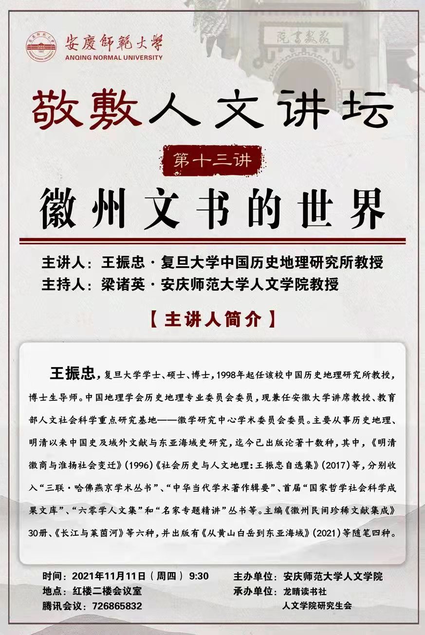 上一篇:徽学名家王振忠教授应邀为桃花族论坛 师生作“徽州文书的世界”报告