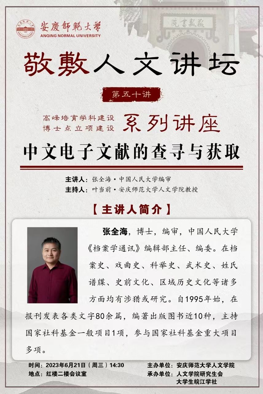 【敬敷人文讲坛(50)】中文电子文献的查寻与获取