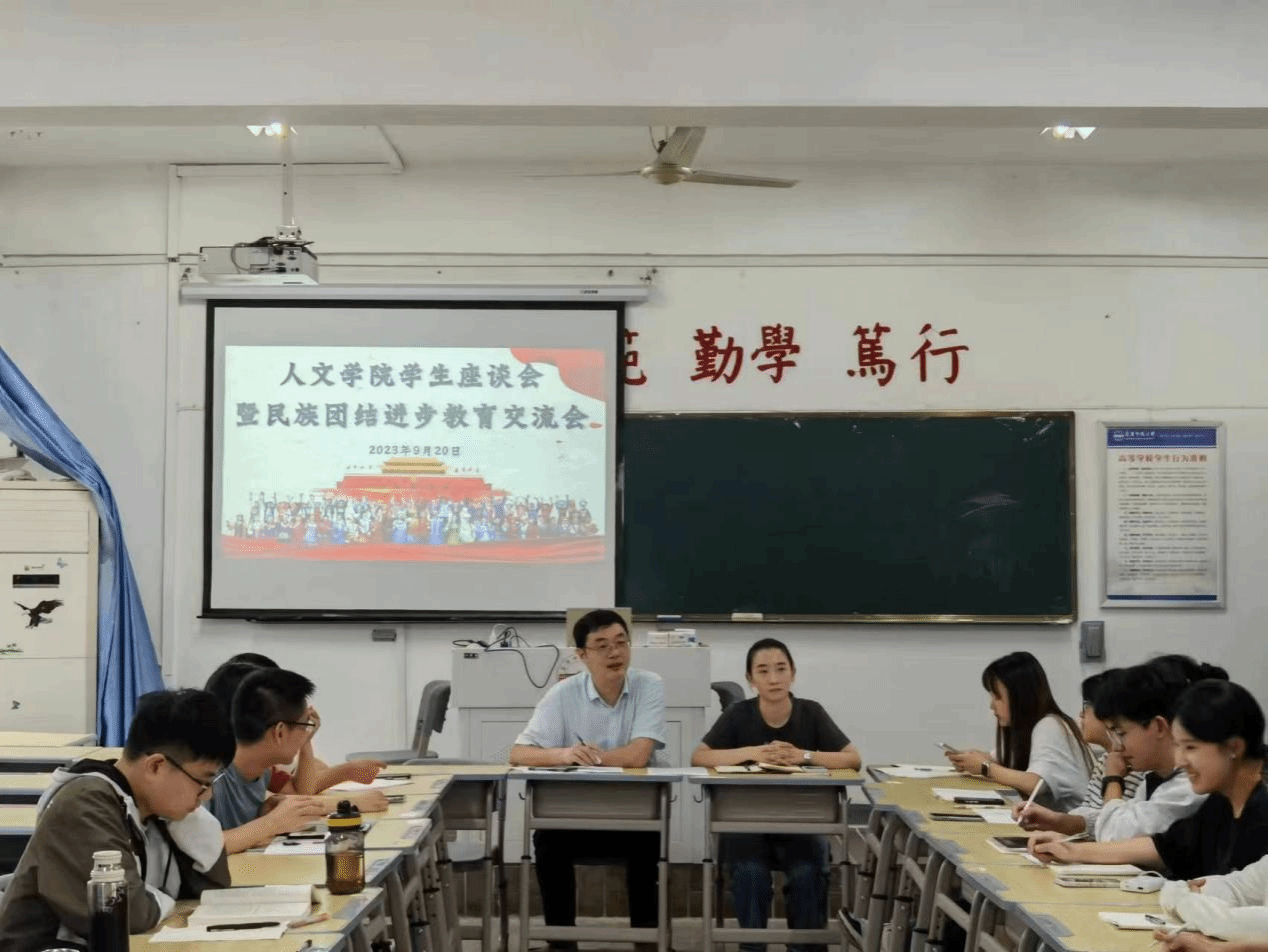 召开学生座谈会暨民族团结进步教育交流会。会议由学院党委副书记王波主持,本科生、研究生各年级、省内外、少数民族学生代表20余人参会。