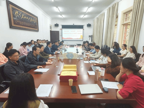 于10月25日下午在红楼二楼会议室举办了汉语言文学2023级“文典班”导师聘任仪式暨师生见面会。学院副书记王波、教学副院长周红兵、教学委员会主任叶当前出席,“文典班”全体导师及同学参加会议,聘任仪式与见面会由副院长周红兵主持。