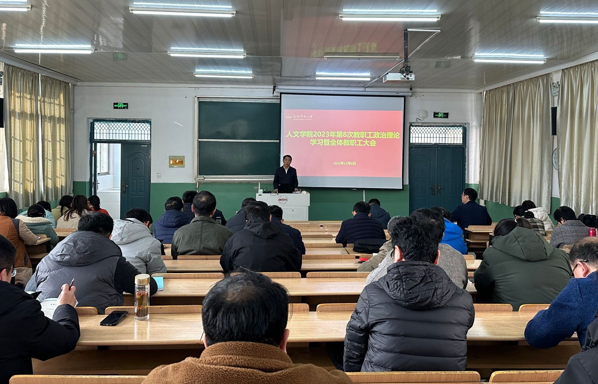在菱湖校区理二阶教室召开2023年第8次教职工政治理论学习会,深刻学习领会习近平总书记对宣传思想文化工作作出的重要指示和全国宣传思想文化工作会议精神,学习韩俊在省委理论学习中心组学习会议上的讲话精神等内容。学院领导班子成员出席会议,全体教职员工参加了学习会。